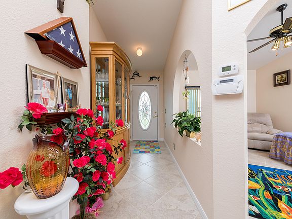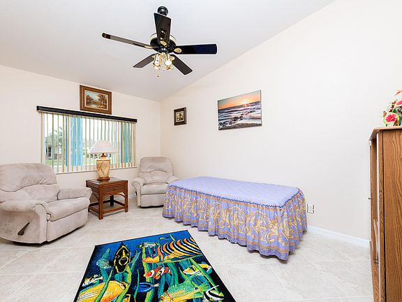 This lovely 3 BR 2 BA ''Dove'' model home features the kitchen, windowed breakfast nook and living room all open to each other. Lot's of cabinets and prep areas in the kitchen along with easy access to the laundry room. There are 2 large guest bedrooms with guest bath that features a tiled shower. The master suite includes a walk in closet, handicapped accessible tiled shower and handicapped ceiling lift system in the bedroom. Additional features include a THREE CAR GARAGE, screen lanai and open patio. Attractive tiled floors throughout. New windows installed 2018. Roof replaced 2018, AC replaced 2012. This is a well maintained home and it shows! ''OPEN HOUSE SUNDAY MARCH 24TH 1PM-3PM.