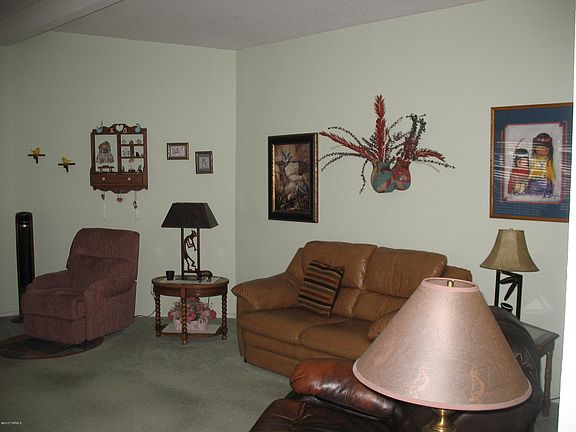 NEW ROOF APRIL 2016! Very nice north facing home on corner lot with 50' covered porch to enjoy great mountain views! Original owner has maintained this home very well and has added improvements such as a newly renovated bathroom with walk-in shower and a 6 month old gas pak combination A/C and furnace. Bright and cheery kitchen leads into living room and dining room, again with great mountain views. Updated washer/dryer and oven/stove. Guest bedroom includes queen size Murphy bed with built in bookshelves and drawers. Larger lot includes shed with double doors for golf cart storage, carport, and covered patio. The HOA fee includes unlimited golf, tennis, pickle ball, shuffleboard, 3 pools, spa, exercise room, trash collection, and a lot more. You own the land!