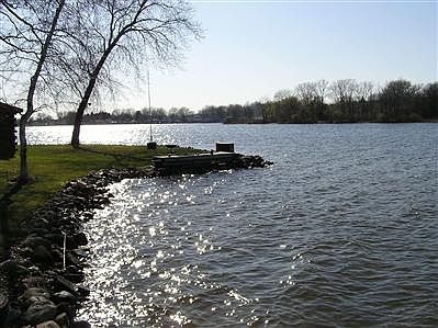This lovely 3 bedroom, 1 1/2 bath lake home has been renovated. 18x32 great room with 13 1/2 foot cathedral ceiling. This is on all sports Long Lake. 16x24 garage for the extra toys that wont fit in the shed. This is a must see! Cement driveway and sidewalks. The kitchen has oak cabinetry and Corian countertops. Sandy beach right in front. Play equipment, brand new 32ft dock (in garage), & storage shed will all stay!