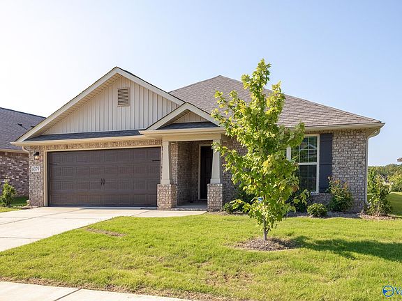 Full Brick practically new four bedroom home in Jaguar Hills. Wide foyer welcomes everyone to this home. Open floor plan offers good flow for kitchen, living room and dining room with easy access to covered back porch. Small room off dining room is perfect for home office or big storage room. Isolated primary suite boasts double vanity, walk in closet and separate water closet. Two bedrooms and bathroom are located off the foyer. Fourth bedroom and laundry are on the opposite side of foyer. Fourth bedroom also boasts a walk in closet. Great newer neighborhood with sidewalks, curbs and gutters in North Huntsville is close to park and community center.