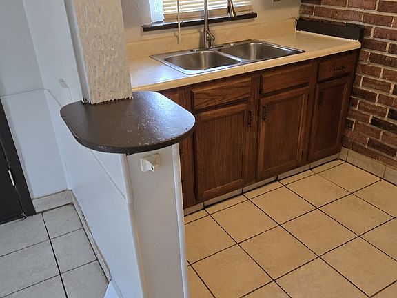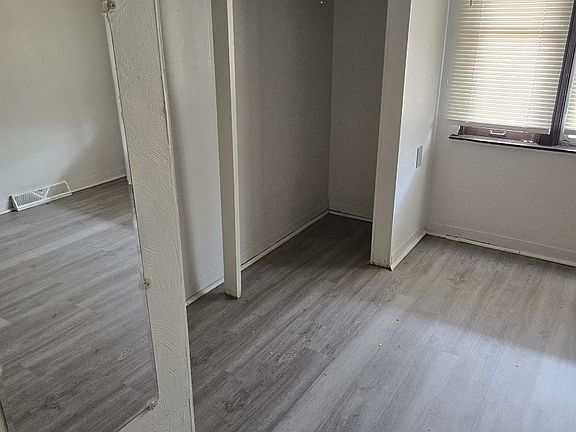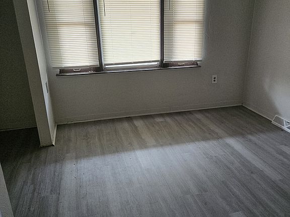 Laminate and ceramic throughout. This one bedroom is very spacious. Has living room dining eat in kitchen bath and bedroom. Back porch is available for use. there is a two-car garage shared by the other tenants. tenants pay all utilities.