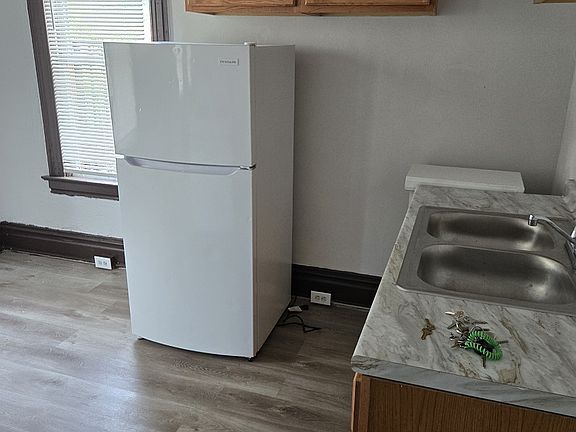 this one bedroom very spacious. has 1 bed, eat in kitchen living room and bath. twocar garage shared with other tenants in building. tenant pays gas and electric. radiator heat.