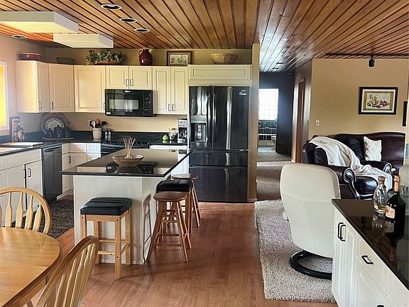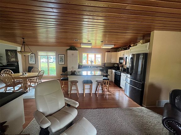 Come find one of Valier's most luxurious homes with high-end touches and an executive, rambler style. Enjoy unobstructed views of Lake Frances and a long expanse of the Rocky Mountain Front on a manicured corner lot with big shade trees. The garage is two-car, detached. The open floor plan invites entertaining with two living spaces, one with a handsome, modern fireplace and triple doors out to the huge patio. The kitchen has quality white cabinets, a dishwasher, built-in microwave, stainless refrigerator, stove/oven, black granite countertops and a center island. Ceilings are lined with wood, designer lighting, some wainscoting and built-ins throughout. Bathrooms offer custom tile and vanities, plus enormous closets. The lower level has a non-conforming bedroom, 3/4 bathroom and a recreation room. Valier is a quaint MT town surrounded by tons of recreation to include fishing, hunting, and hiking. Call Lynn Kenyon at 406-770-0013 or your real estate professional. Fishing is year-round on the lake. About two hours to Glacier National Park. Home has brand new carpet and doors (on their way) in the lower level. Shed.