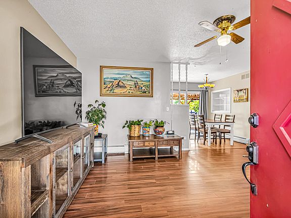 Affordable homesteading opportunity knocking! This spacious 4-bedroom, 2-bathroom ranch-style home is located on a generous lot at just above a quarter acre in size, seamlessly blending cozy interiors with an enchanting garden paradise – a rare opportunity to enjoy the best of both worlds! In addition to the living, dining, and mudroom spaces, you can effortlessly prepare meals in the functional and stylish galley kitchen. or take the significantly sized 4th bedroom, currently used as the primary suite with walk-in shower and separate exterior access, and use the space as a large second living or flex space with ease! This property features not only an attached garage, but also a detached garage shop with electrical in place for room to build, create, or store whatever you'd like! The front yard presents a chance to savor the flavors of fresh herbs from your very own garden surrounded by mature trees, while the backyard is a green thumb's dream come true, containing a mature vegetable garden offering an abundance of homegrown delights and a negotiable well-designed chicken run and coop is in place to enhance the rural lifestyle opportunity found here. Unwind on the arbor-like covered deck and entertain to your heart’s content under the gorgeous Colorado skies, as there is room for all for fantastic summer barbecues and fun! The large side yard boasts ample room for the RV parking (with electric hookup available) or just about any toy you can image through a double gate on the side yard with direct access to the road for ease of use! With NO HOA limitations to create your dream outdoor space, located just minutes from shopping, dining, and schools, and priced to improve as your own personal canvas for a little oasis in the city feel, this one won't last long!
