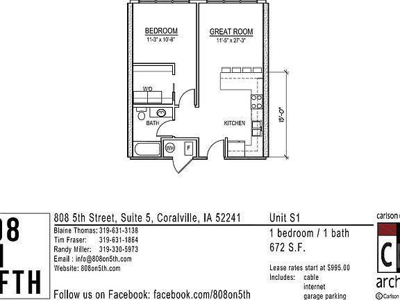 Have you considered the better lifestyle and incredible value associated with living in Coralville rather than Iowa City or surrounding communities? Do you park your car only to take a shuttle to work or school? Are you aware of what transit based development can do for you? Do you know about the extensive services and benefits Coralville has to offer? Do you know about 808 on 5th? Check us out on Facebook www.facebook.com/808on5th/ or on the web www.808on5th.com Take advantage of Coralville's spectacular services and be treated like a guest; choose 808 on 5th Coralville's Brand New Mid-Rise High Life Development for your next residence. We appreciate your interest and encourage you to click "reply" located above to contact Tim Fraser to schedule your private viewing of the project and to reserve your space today. Each unit offers: * Spacious floor plans with upscale finishes throughout * Lease rates that are more competitive than neighboring properties and cities * Units that are larger than competitive properties * Cable and internet are included * Solid surface flooring throughout every home * Stainless steel appliances and custom kitchens with islands for seating * Private Washer and dryer included in each home * Ceiling fans in every bedroom and great room * Real gas fireplaces for warmth and ambiance * Bathroom access does not require walking through a bedroom * Oversized balconies available * Gas grills allowed on balconies * Oversized elevators with staging areas in garage and vestibule for ease of move in * Additional private storage available onsite * Two stair sets one at each end of building for easy access * Double key security system * Climate controlled underground parking available parking at grade included * Building quiet building by construction and design * Large windows for natural light offering incredible views * On site property management office to resolve your needs in a timely manner with service available 24 hours a day 365 days a year * Public transit conveniently located directly in front of the building with direct service to the University of Iowa. Service provided every 30 minutes during daytime hours. Average delivery to destination is 9 minutes. * Discounted memberships available for 319elitefitness.com a full service 24 hour gym located on premises. * Walking distance to New Pioneer Coop coffee shops restaurants medical services and a wide array of other retail offerings. * Immediate access to extensive walking and bicycle trails * Fiber optic service is available throughout the entire building We appreciate your interest and encourage you to click reply above to contact Tim Fraser to schedule your private viewing of the project and to reserve your space today. Live the difference live at 808 on 5th. Free Cable and Internet included. $150.00 credit towards your membership at the full service on site fitness facility!