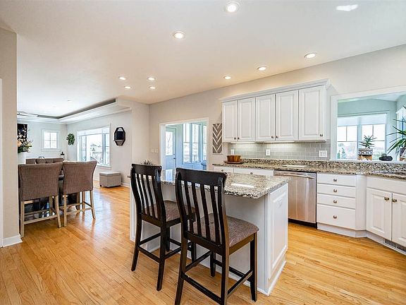 Sophisticated & timeless two-story, 6 bedroom & 3.5 bathroom home in Windsor Ridge with nearly 4,500 sq ft. Situated on a 3/4 acre double lot lined by evergreens creating a private oasis with heated saltwater pool, stone fire pit, generous patio, screened porch, and enormous wrap-around deck. Comfortable open-planned kitchen & great room with shiplap detailing and gas fireplace opens to a light-filled sunroom with 3 walls of windows & deck access. Separate dining room, living room, and front foyer create a gracious entrance and conveniently lead to the mudroom and laundry room directly off the 3-car garage. Upstairs are the primary bedroom with ensuite and 4 additional bedrooms & hallway bath with dual sinks. Primary bedroom features a walk-in closet and slate-tiled bathroom with dual sinks, soaking tub, and separate shower room. Lower level rec room with wet bar, 2nd gas fireplace, and walkout to the patio and pool made for relaxing and entertaining. The lower level also includes a guest bedroom with garden view, full bath, storage rooms, and a bonus room which has been used as a gym and playroom. New pool pump, heater & control unit 2022. New roof, Anderson windows, LP Smartside siding with Diamond Kote 30-Yr No Fade Finish 2021. New main level HVAC 2020. New deck 2018. Maple and tile floors throughout the entire main & upper level and all counters are granite.