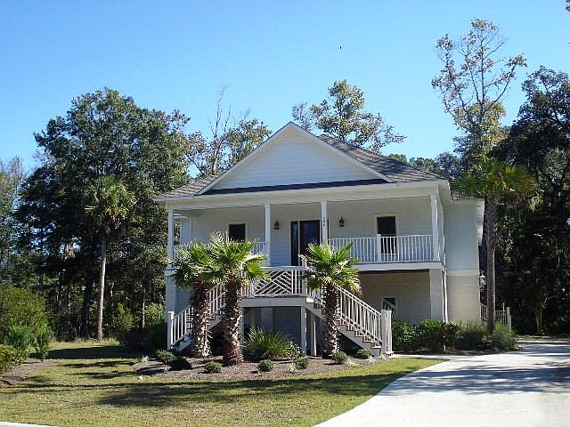Priced reduced to sell! Lovely hardi-plank coastal home with tabby foundation and wide front porch. Covered back porch overlooks a heavily wooded and sheltered backyard. This one level living home features maple cabinets and granite countertops with limestone backsplash, Kitchen Aid appliances, walk in pantry and kitchen pass thru to family room. Built-in bookcases flank the gas fireplace in the family room. Oak flooring with plush carpeting in the bedrooms and tile in the baths. Master bathroom features double vanities, ball and claw tub and separate walk-in shower. Large walk-in closet off the master bedroom and great storage featured throughout the home. The primary guest bedroom is a private suite with walk-in closet and bath