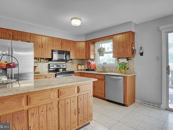 Introducing a beautiful family home in Muhlenberg Township! This spacious home offers approximately 1,846 square feet of living space, featuring 4 bedrooms and 2 full bathrooms. The kitchen shines with granite countertops and beautifully tiled upper level. Enjoy relaxing views from the top deck where you'll find a delightful oasis with five peach trees and a large garden, perfect for those with a green thumb. The lower level boasts a cozy Quadra wood burning fireplace insert, ideal for chilly evenings. Additional amenities include a convenient laundry room and a garage for your parking needs. Don't miss out on this fantastic opportunity to own a charming home in Muhlenberg Township. Contact us today to schedule a viewing and make this house your home!