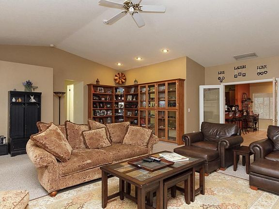 One level 5 bedroom ranch house for sale in Prescott, AZ with guest house or 4 car garage, easy RV parking, backyard paradise on level private .83 acres w/tall trees & boulders. Country living 5 minutes to Yavapai Regional Medical, walk to Prescott High & Taylor Hicks schools. Freshly painted interior, master suite with sitting room, large living room w/vaulted ceilings, fireplace; kitchen w/wood floors, granite counters, new range; formal dining w/bar. Covered outdoor kitchen, stone fire-pit, 3-car carport, security doors, alarm. Built-in lofts in kid rooms. Security system controls thermostat, doors, lights from smart phone. Garage heated by propane, built-in Dirt Gorilla, dedicated HD air compressor, 6hp, 60 gallons, 6 air outlets, new covered wood deck w/French doors. Assumable VA loan