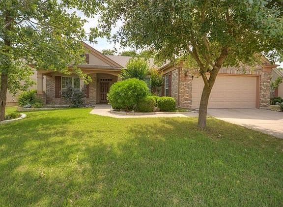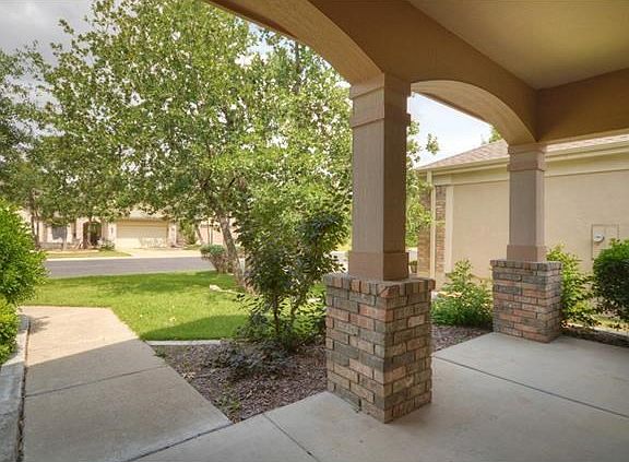 Snuggling a neighborhood "forest," this spacious Sun City Texas Cortez welcomes you with a Front Siting Porch, a perfect spot for potted plants, or a favorite bench. Inside, crown molding and trim molding create a wonderful Gallery Foyer, where the twenty-inch tile floor continues into the Great Room. There, twin sets of full-view glass doors reveal the Extended Covered Patio and that scenic view. Rich granite counter tops and upgraded cabinets host the Island Kitchen with bay-windowed Breakfast Room.