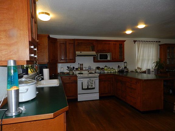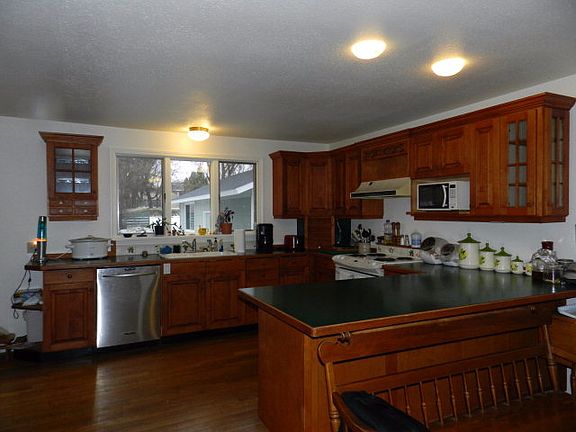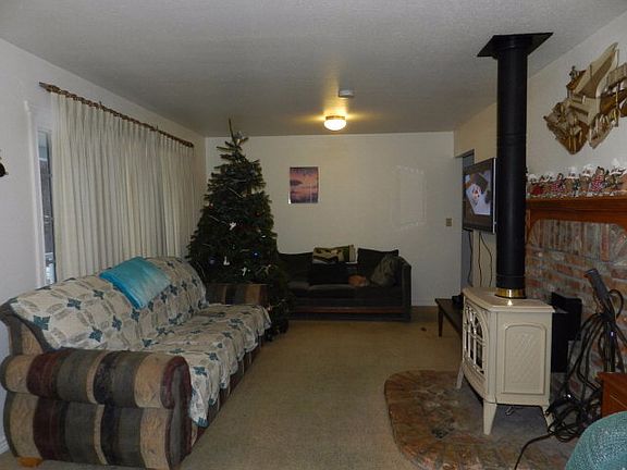 Charming 2 bedroom 1 bath with full Basement. Recently improved with all new plumbing, interior paint and exterior siding has been pressure washed. Enjoy gourmet cooking in the elegant kitchen with custom wood cabinets, breakfast bar and hardwood flooring. Full basement with plenty of storage and bonus room, perfect for office, craft or play room. Insulated 1-car detached garage with built-in workbenches plus carport and plenty of room to park your RV or toys. Wood deck provides loads of privacy for your outdoor BBQ and entertaining with views of the spacious beautifully landscaped backyard. House is keep cozy with baseboard heaters in dining room and bedrooms and beautiful propane stove in the cozy living room. Conveniently located near schools and shopping. Priced to sell at $130,000!