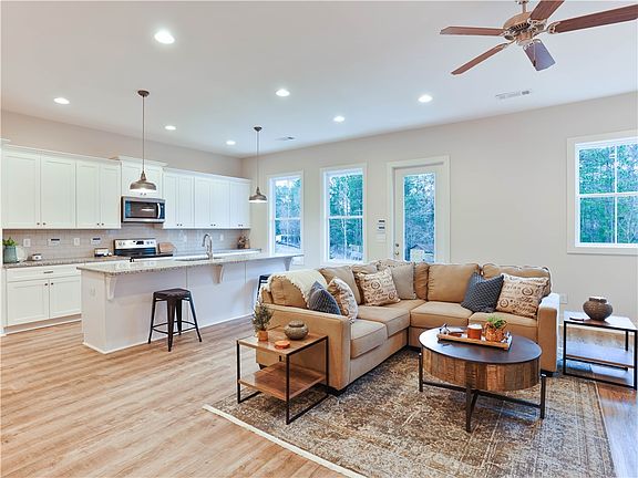 *MOVE IN READY* Less than 2 miles from Auburn University's Jordan-Hare, Owens Crossing is built by Holland Homes LLC. The interior unit, 2 car garage townhome features 4 bedrooms, 3.5 baths, and features an open floor plan that promotes easy livability. Showcasing 10 ft ceilings and 6" baseboards throughout, the modern farmhouse design is both charming and functional. Durable luxury vinyl plank can be found in all living spaces and carpet in the bedrooms. The kitchen displays custom cabinetry, granite countertops, and stainless Whirlpool appliances. The spacious owner's retreat features a double vanity, tiled shower, and walk-in closet. Three additional bedrooms are located on the upper level. Bedrooms 2 and 4 have a shared bath while bedroom 3 has its own private en suite.