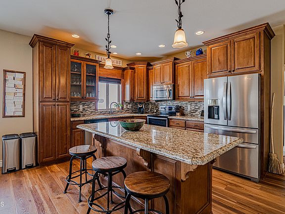 This wonderful 5 bedroom, 3 bath home offers a beautiful living space perfect for entertaining or relaxing with family. The gas fireplace in the living room wrapped in stone provides warmth and ambiance during those chilly nights. The custom kitchen offers maple cabinets, granite in both the center island and the countertops, a pantry and tiled backsplash. The newer flooring on the main level kitchen, dining room, and living room adds to the modern look and feel of the space.