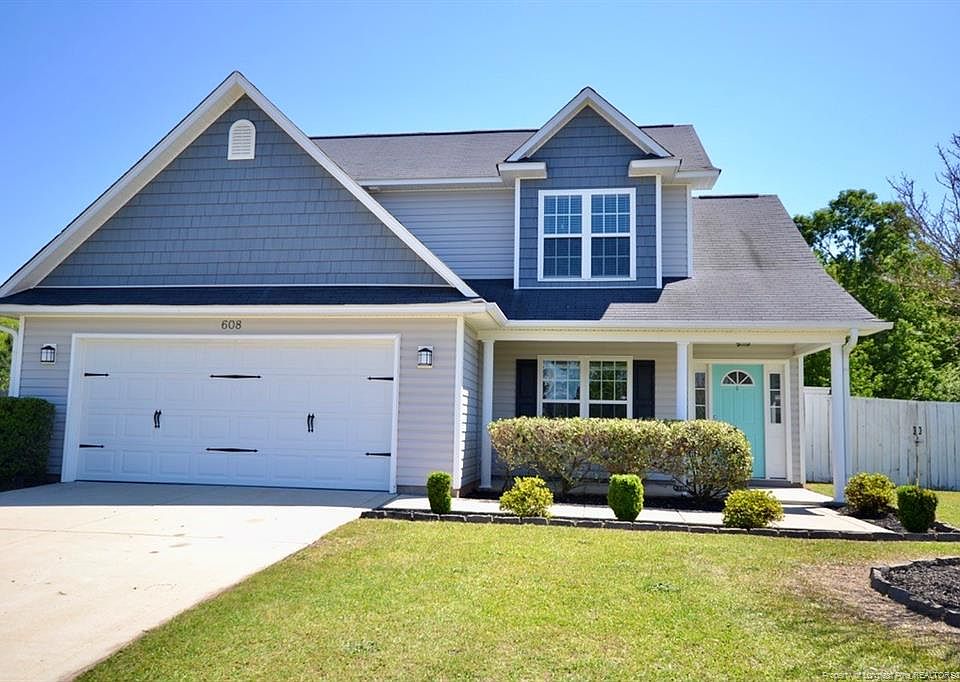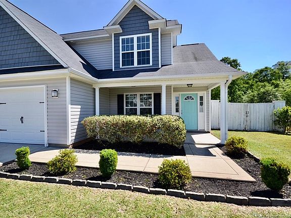 Fantastic home with an open floor plan with a large vaulted great room with new paint and new LVP flooring. The great room is open to the large eat-in kitchen with all appliances, pantry and lots of counter space. Bonus room and laundry room is located on the main floor. All bedrooms are upstairs. Huge master bedroom with trey ceiling and walk-in closet. Bathrooms upstairs have good closet space. Covered back patio overlooks the privacy fenced backyard, storage shed, fire pit and no back neighbors. Area behind the fenced backyard is cleared out with another fire pit and access to Rockfish Creek. No HOA, but you have access to the playground and BBQ pavilion in the neighborhood. Minutes away from shopping! Move-in ready!