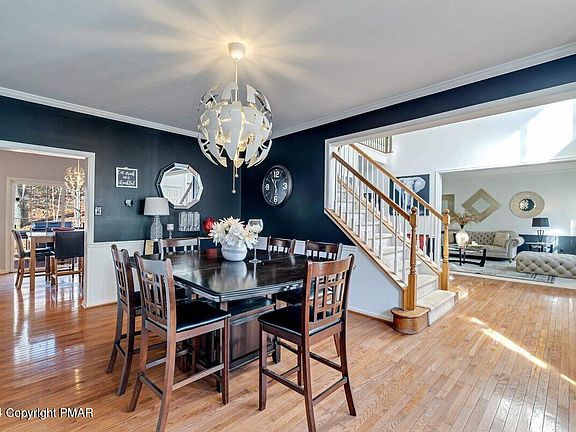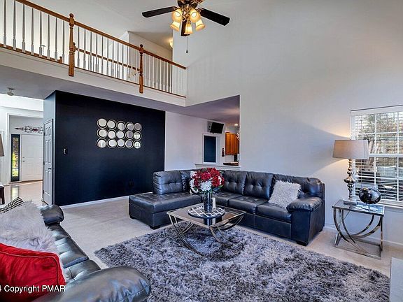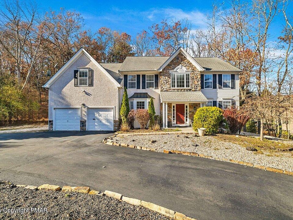 Property is Under Contract and considering back-up offers only at this time.'Discover this STUNNING HOME nestled in the sought-after COUNTRY CLUB OF THE POCONOS, a mere TEN MINUTES from the NEW JERSEY BORDER. Boasting a spacious 4/5 bedroom and 3-bathroom layout across nearly 5,000 finished square feet, this COLONIAL gem is bathed in NATURAL LIGHT and elegantly appointed, promising not to be on the market for long. Venture upstairs to find a striking CATWALK that offers views of the family room, complete with an impressive floor-to-ceiling STONE FIREPLACE/SKYLIGHTS, as well as the grand foyer, accentuated by a large window that floods the space with sunlight. The primary bedroom is a true retreat, featuring RICH BAMBOO FLOORING, a cozy sitting area, a LUXURIOUS EN SUITE BATHROOM, and a W three SPACIOUS BEDROOMS and a full bath are provided. The EAT-IN KITCHEN is a chef's delight, equipped with MODERN STAINLESS-STEEL APPLIANCES, a generous center island, a pantry, and extensive cabinet space. Entertain guests in the dining room, highlighted by a large bay window, or unwind in the tranquil front living room. If a MAIN-FLOOR BEDROOM is desired, the inviting DEN adjacent to the family room is perfect. Descend to the FULLY FINISHED LOWER LEVEL for the ULTIMATE ENTERTAINING SPACE, featuring a wraparound BAR, textured walls, tons of space for your pool table/games, an EXERCISE ROOM or extra bedroom, and an IMPRESSIVE THEATRE ROOM! A convenient mudroom/laundry room and half bath are located just off the 2-CAR GARAGE. Step outside to relax on the EXPANSIVE PRIVATE BACK DECK. With MODERN FINISHES and every convenience considered, this home is IDEALLY SITUATED NEAR ALL POCONO ATTRACTIONS, schools, and hospitals, and includes access to an OUTDOOR POOL, PLAYGROUND, GOLF COURSE, TENNIS COURTS, and road maintenance. Schedule your visit today!