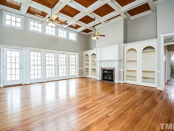 Built in 2003, this Clayton one-story offers hardwood flooring, a fireplace, and a two-car garage. Upgraded features include fresh interior paint and new carpet in select rooms. A community pool and gathering shelter are part of the Ole Mill Stream HOA.