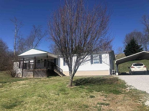 Nestled in the trees 3BR /2Bath Doublewide with covered porch. Lots of room on 6.5 Acres. Detached over sized work shop with water & electric.