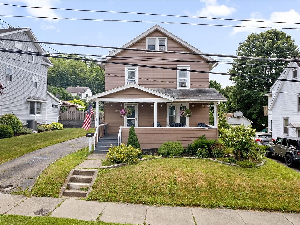 Check out this charming four bedroom home located in Endicott! Beautifully maintained home boasting gorgeous hardwood floors, a generously sized back yard and plenty of living space inside. Upstairs, you will find all four bedrooms, a full bathroom and the primary bedroom featuring a walk in closet and ensuite half bath. Conveniently located near West Main Street and En-Joie Golf Course, this home is central to all Endicott has to offer, and just a short drive to the Vestal Parkway. All kitchen appliances are new within the last year. Carpeting upstairs is approximately 3 years old.