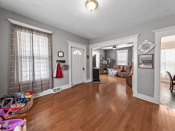 The perfect mix of charm and renovations make this a welcoming home in Herkimer. A total of 1840 sq ft delivers 3 bedrooms and 2 full renovated baths. Oversized eat-in kitchen boasts oak cabinets, vinyl flooring, stone counters & stainless appliances inc. dishwasher. Hardwoods in the living room, family room, laundry room, rear foyer w/ double closets. Aluminum siding, covered front porch level & fenced rear yard w/ shed perfect for playtime or firepit. Off-street parking for 4 vehicles. Great way to get into home ownership or nab a spot walkable to restaurants, shopping, Herkimer High.