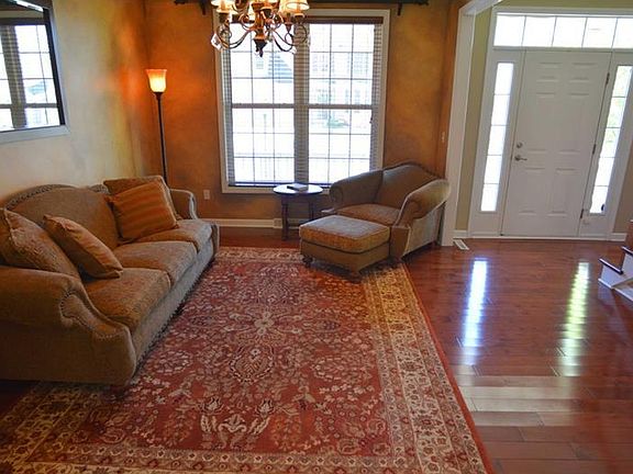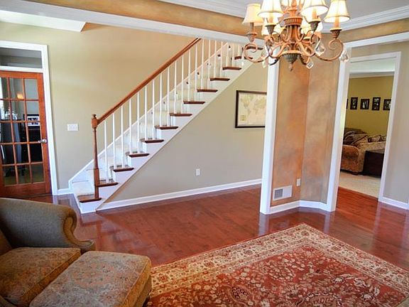 Nestled in Heritage Creek is this custom brick 5 bedroom 3.5 bath home on a cul-de-sac street. The first floor features gleaming hardwood floors, 9' ceilings, a modern open floorplan and natural sunlight flooding the pristine home. The spacious den boasts built in shelves, large windows and sits at the front of the home. The bright dining room is open to the kitchen which features modern lighting, stainless steel appliances including a double oven, gleaming granite countertops, custom cabinetry, a casual dining area and rear patio access overlooking the gorgeous level, wooded backyard. A first floor laundry is off the kitchen and has exterior access. The generous sized family room features a stone fireplace with custom trim work, crown molding and views of the amazing backyard. The second floor owner's suite features his and her closets and a spa-like bath with a dual vanity, a custom tile shower and a jetted tub. Three sizable guest bedrooms have large windows, ample storage and share a hall bath with a dual vanity and tub/shower combo. The lower level is complete with a custom wet bar, a versatile room, a second family room, full bath and storage. Retreat to the tree lined level yard with family and friends. The community offers a clubhouse and pool for residents to enjoy! This fabulous location is tucked away in the back of the neighborhood yet very conveniently located to Route 228, shopping and restaurants. Walk to the Springfield Grille! Location, community amenities and a gorgeous, quality built true custom Kaclic home make this one to see!