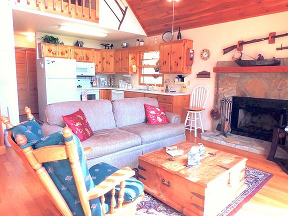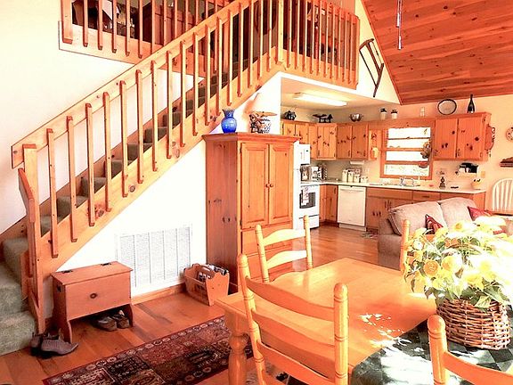Make yourself at home in this 2 bedroom/ 2 bath mountain chalet on 2.6 +/- acres. The two-story great room, with soaring vaulted ceilings and open layout, is charmed by a wood burning fireplace and warmed by wood floors/ceilings. Fronted by dual sliding glass doors, the outdoors spills into your living/dining area, bringing even more light and air. The staircase draws you up into the loft master bedroom, complete with a generously sized walk-in closet and ensuite bathroom.Expansive and shady, the covered porch wraps around to a sun deck, overlooking the large backyard. Whether full time or on vacation time, 608 Country Springs Lane is the perfect setting for relaxing and kicking back.