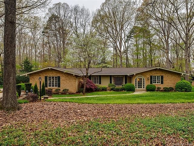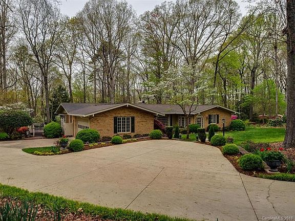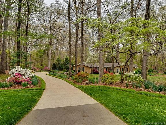 Lovingly maintained one-owner home on lush acreage in a quiet neighborhood in Matthews. Enjoy room to grow in well-regarded school district. Grounds include mature plants, flowers, pathways to cute "playhouse" & large, detached wood shop (could easily convert to recreation room or art studio). Numerous updates over the years (quartz & granite counters, paint, enclosed porch, owners' bathroom, etc.) Enjoy one-level living with lots of storage in a peaceful setting near shopping & amenities. Heating system is electric heat pump with natural gas backup. Exterior is predominately brick. Vaulted foyer ceiling, enclosed front courtyard, some hardwood flooring, and custom built-ins.