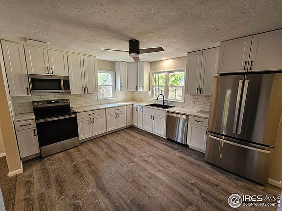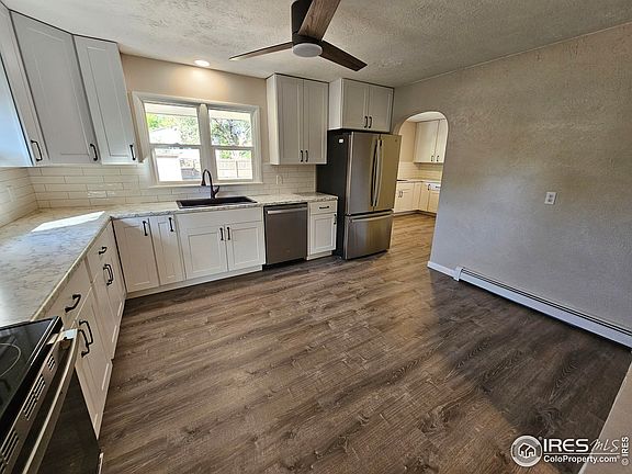 Hands down the best layout you'll find for an all main level ranch home! Facing east, the sunrise greets you on the covered front porch and inviting you in is the spacious living room with big picture windows, crown molding ceilings, and curved doorways. Everything has been updated in the new kitchen with tons of counter space! An eat-in corner is just the right size for your dining table. Before you go out to the private back yard you walk through the laundry room with new cabinets AND big wash sink! The primary bedroom has the walk-in closet just waiting for your design touches or turn it into a study/dressing room! Two more bedrooms & a brand new full bathroom complete this home. The back covered patio is just perfect to watch your raised garden beds grow. Fully fenced yard with storage shed! New roof, new flooring throughout, long off street parking driveway!
