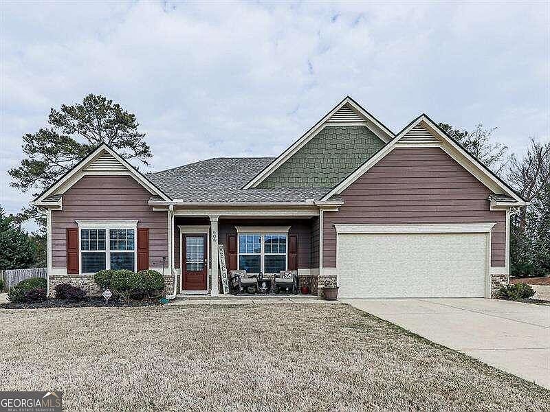 Come see this charming TRUE RANCH home. Large 3 bedrooms and 3.5 bathrooms. Formal dining room and large kitchen. Beautiful brick accent wall in the kitchen. This house has plenty of room to entertain. Painted exterior home 2019 and interior 2020. New appliances 2020. New roof 2020. New carpet installed 2022. This beautiful home is completely move in ready! Backyard has tons of space. Covered patio and fenced in yard! Home is perfectly located by the green space and swimming pool! Conveniently located in Hickory Flat close to shopping and schools. Make your appointment today to view this turnkey home.