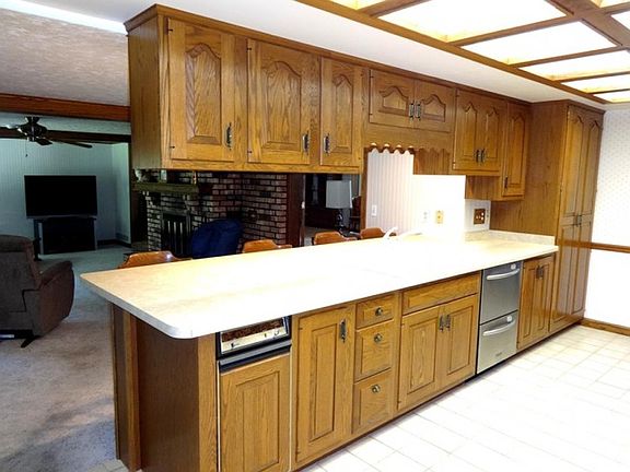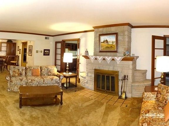 Gracious 1 story home loaded with amenities, beginning with Indiana Limestone exterior, attractive covered front porch, concrete driveway & 2x6 construction. Spacious living room with fireplace & bay window open to the formal dining room. Main floor family room w/ second fireplace. 2 sets of French doors opens to the kitchen & sun room. Kitchen with snack bar, tons of cabinets & all appliances. Mostly newer windows.