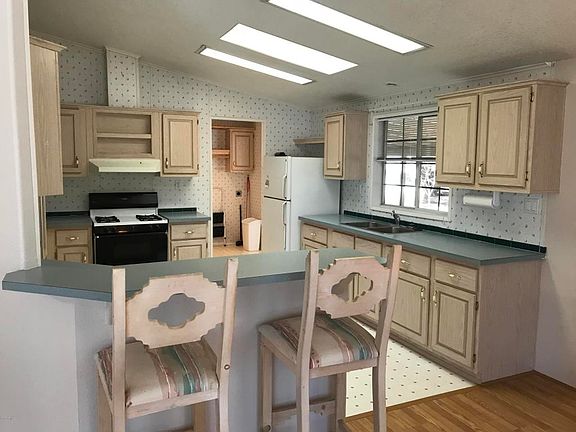This is a Beautiful manufactured home with large kitchen with lots of cabinets, and breakfast bar. Formal dining area with very light open floor plan. Roomy Great room with nice covered patio on the outside. 3 bedrooms, 1 has double doors and would make a nice den or office, but has a closet so can be 3rd bedroom. Master bedroom is very roomy with large Bathroom with big walk in shower. Refrigerator transfers with the home.