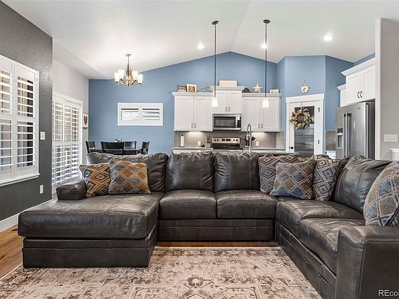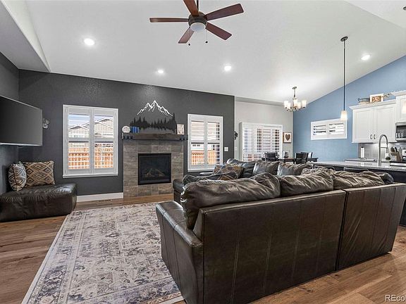 Stunning Ranch home backing to greenbelt! This home is turnkey ready and shows like a model, with upgrades throughout and a functional open floorplan allowing everything to flow together in one space. This home welcomes you in with hardwood flooring extending from the entryway throughout the open family room with gas fireplace, vaulted ceilings, plantation shutters and plenty of natural light. The kitchen is a cook’s delight with a large center island, pendant lighting, quartz counters, walk-in pantry and eat-in space. Retreat to the primary suite with walk-in closet and spa like 5pc bathroom featuring quartz counters, walk-in shower and soaking tub. Two additional bedrooms sharing a full Jack-n-Jill bathroom complete the main living space. Plenty of room for entertaining in the finished basement Rec Room with additional area for an office. A fourth bedroom in the basement with en-suite bathroom gives you the perfect setup for guests. The unfinished portion of the basement allows you room for storage space or future expansion if desired. Step outside to your covered patio, and large private yard to take in the beautiful sunsets and serene setting. Located in a quiet community, backing to a greenbelt and walking trail, you’re surrounded by several parks, and open spaces for outdoor enjoyment. Great proximity to Main Street in Berthoud with options for dining and shopping. Nearby major routes for convenient commuting to Loveland, Fort Collins, and DIA. Don’t miss out on the beautiful home that is move in ready!