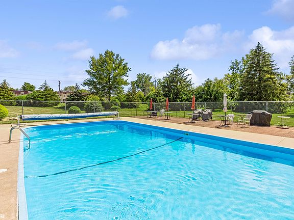 In need of a condo? This is the answer! Two bedrooms, 2 baths, a separate dining area, and a large living room with a deck off the sliders allow plenty of room to spread your wings. The open kitchen has been updated with beautiful countertops. And the primary bedroom tiled shower is absolutely beautiful! All new carpet was installed in the spring of 2023. A true perk is the dining table & 8 chairs as well as the 2 beds, dressers with mirrors, and night stand can stay. Association fee is $280/month which includes snow care, mowing, garbage, cable, water, and some outside building maintenance. An inviting pool and tennis courts are also part of the package. One garage stall (#4) makes it easy for you to unload your groceries into a grocery cart, hop into the elevator, and zoom up to your room. HSA home warranty is in effect until May of 2024. Come see this unit today before it's gone!