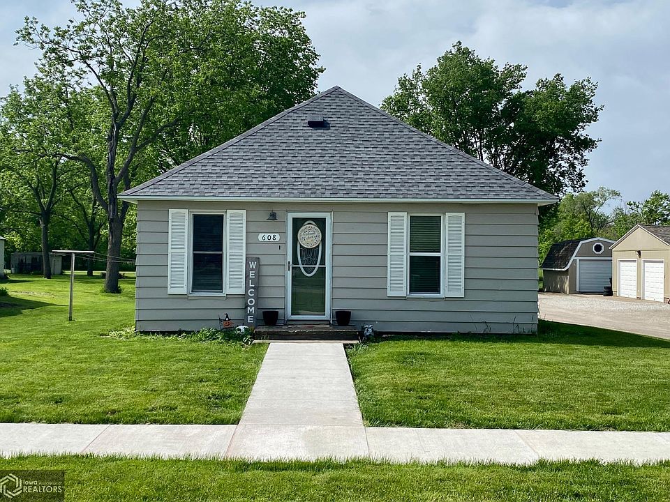This cozy and energy efficient 2 bedroom home is perfect for anyone looking to downsize or buy their first home. You will love the enamel sink and metal cupboards that are in great condition! It is move in ready and sits on large lot right on the bike trail at the edge of Ogden. The home has many improvements including fresh paint and new roof in 2021. The block basement has great storage and houses the utilities. The 16' x 24' garage has a newer concrete floor and has heat and electricity. Enjoy the tranquility of small town living while still being close to Boone, Ames, and Des Moines!