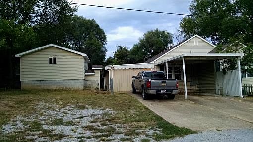 Many possibilities with this older home w/ Hwy 62 frontage and side road frontage. 2,300 sq. ft. of main building space plus an additional finished 14x16 building in back. The main house has a possible 4 bedrooms and 1 1/2 baths, Central H/Air, Fireplace, wood floors, appliances, and more. Additional unfinished space/rooms added onto the back side of the home. Last used commercially with half dividers in bedrooms and a secretary office in the entrance that can all be removed if desired. Large back yard has chain link fencing w/ separate pen and storage building. The 14x16 finished building sits on top of a storm cellar and has electricity, air conditioning, and wood framed wire dividers. Additional lot space available. Perfect location in the middle of Berryville, walking distance to schools, grocery, restaurants, city square and more. A little TLC required to make this a nice older home.Act fast, Priced well below mortgage pay-off to sell quickly!