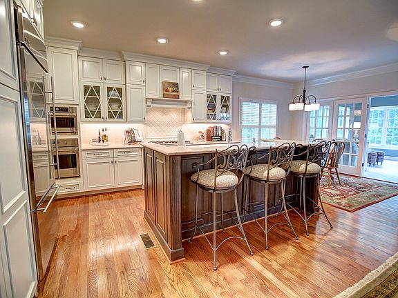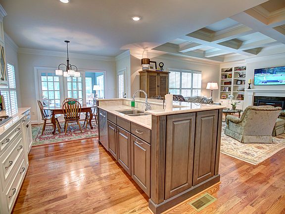 Why build when you can move into this nearly new home in the very desirable Kinloch neighborhood? With nearly every upgrade, this home WOWs with its gorgeous finishes. Built in late '13 on a premium lot with wooded privacy to the rear & a beautiful raised brick terrace for outdoor entertaining. Award-winning open design with 10-ft dramatic stone counters, stainless appliances, gas cooking , large island for food prep & casual dining and convenient butler's pantry with wine chiller. Sunroom floods the interior with natural light & family room features dramatic coffered ceilings & gas fireplace. Formal dining & living rooms greet guest off the center hall foyer. 1st floor owner's suite with two walk-in closets & bathroom with travertine marble, dressing table & shower stall. 2nd floor includes loft area, 3 more bedrooms + media room. Low-E windows, high efficiency HVAC, conditioned crawl spaces, upgraded insulation & tankless hot water. 3-bay garage w/ epoxy-coated flooring and lots of extra storage. Truly move-in ready and priced far less than Boone's 2016 pricing schedule!