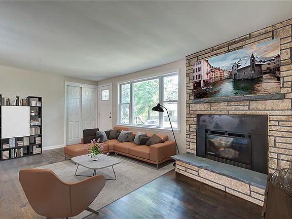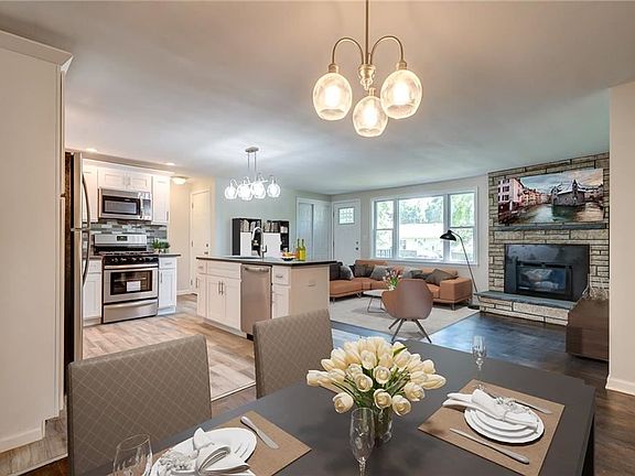 This beautiful renovated 1950's Ranch is located in the popular "Bellewood" neighborhood, which is close to Cicero-North Syracuse schools, shopping, and all major highways. The living area features an open floor plan, a new kitchen with stainless steel appliances, quartz counters, cabinets, a center island, and tile back splash, an eat in area, a living room with a gas fireplace, a sun room with access to the backyard, 3 good sized bedrooms, and an updated full bath. There is also a 1 car attached garage that provides access to the basement and laundry room, and a good sized yard. Some of the major upgrades include a new roof, furnace, hot water heater, refinished hardwoods, and windows. This is a move in ready home! Call today for a private showing!