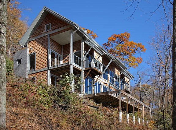 AIA Award Winning Architects own 2700 sf home. Private yet convenient to Blowing Rock. Situated at 4400 feet with spectacular views at top of paved drive which backs to 3500 acre Moses Cone Park. Two minutes to Ski. Stunning sunrises with 90 mile views to downtown Charlotte. Indoor/outdoor living with south facing wall of glass to large deck. Smart-house technology for access from a computer anywhere. Hydro radiant heat floors, security, whole house audio, low voltage lighting and monitoring cameras. High end custom low maintenance finishes inside and out. Open spacious floor plan.