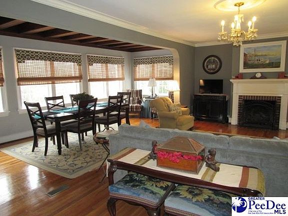 Beautiful historic Art Deco home located near Timrod Park and the old Florence Museum!!! This gorgeous home on a corner lot is breath taking as you tour the interior and walk the fabulous .46 acre yard. The home features real stucco on the exterior, the original hardwood floors, a gas fireplace in the living area, a lovely built in corner cupboard in the dining room and a screen porch for morning coffee or afternoon visits with your friends. The garage is located under the house and has steps to the upstairs. Also, there is extra storage in the garage. Don't miss the opportunity to live in this popular neighborhood. Move in the door ready!