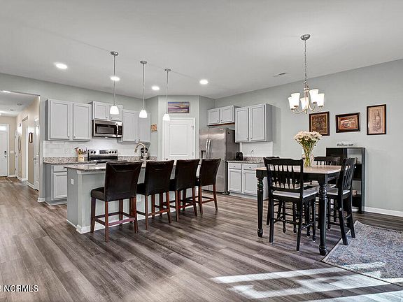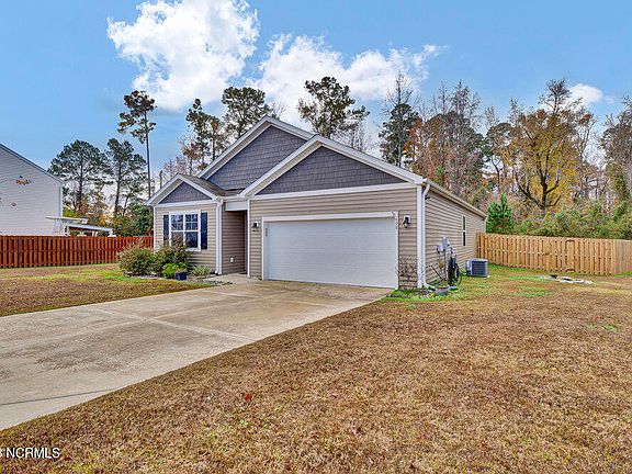 Discover the perfect blend of comfort and convenience in this charming 4-bedroom, 2-bathroom residence located in the serene Rivendell Bay community. Situated on a quiet cul-de-sac lot, this home is an ideal retreat for those seeking a peaceful living environment. Upon entering, you are greeted by a spacious open floor plan that seamlessly connects the living, dining, and kitchen areas, creating an inviting atmosphere for both relaxation and entertainment. The heart of this home is the kitchen, featuring granite countertops and a large center island, perfect for casual dining or meal preparation. Additionally, the kitchen is equipped with a corner pantry, providing ample storage space for all your culinary needs. The main living areas are adorned with luxury vinyl plank flooring, offering both durability and a touch of elegance. The primary suite serves as a private sanctuary, complete with a double vanity and a generous walk-in closet, ensuring ample space for personal storage. Step outside to the screened porch and immerse yourself in the tranquility of the fenced yard. This outdoor space is further enhanced by a hot tub, offering a perfect spot for relaxing after a long day. This home comes with the added convenience of all appliances included in the sale, making the move-in process smoother and more effortless. The 2-car garage provides secure and convenient parking, along with additional storage options. Located with easy access to 140, this home is less than 3 miles from essential grocery shopping and dining options, ensuring that all your daily needs are within easy reach. For outdoor enthusiasts, the property is just a 10-mile drive from the Castle Hayne Boat Ramp on the Northeast Cape Fear River, offering ample opportunities for water-based activities and adventures. Embrace the blend of modern living and serene surroundings in this delightful Rivendell Bay home.