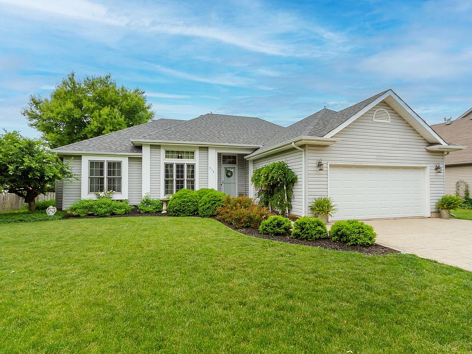 Nothing to do but move into this beautiful four bedroom ranch in Hampshire. Spacious living room with vaulted ceiling, recessed lighting, updated fireplace with new tile and hearth, and slider to the patio. Adjacent to the family room is a formal dining room with an abundance of natural lighting and a pass through to the kitchen. The updated kitchen boasts modern white cabinetry, Corian counters, tile backsplash, planning desk, pantry closet, eat-in area, and wainscoting. The master bedroom features a tray ceiling and en-suite bath with double sinks, whirlpool tub, and separate shower. There are two additional bedrooms on the main level and another full bath. The finished basement adds even more living space with a large family room, 4th bedroom, and another full bath. Outside, you can relax on the two-tier paver patio overlooking the fully fenced yard. New furnace and AC in 2018. Located minutes from parks, restaurants, schools, and easy access to I-90. Great home in a great location!
