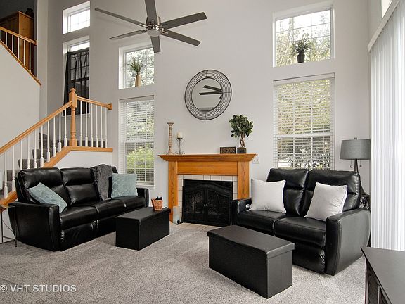 Incredible 2 bedroom, 2 1/2 bathroom, end unit townhome! Beautiful all white kitchen with stainless steel appliances, eat-in area, and dining room. Skylights and large windows throughout the home. Vaulted ceilings in cozy living room with fireplace and sliding glass door leading out to patio with a lovely pond view. Awesome master bedroom with walk-in closet and full bathroom. Sizable loft area that can be converted to 3rd bedroom or office. 2 car attached garage. Top rated Oswego East High School, and only minutes away from Farmington Lakes Park where you can enjoy walking trails, fishing, and beautiful scenery. Fantastic location close to restaurants, shopping and more!