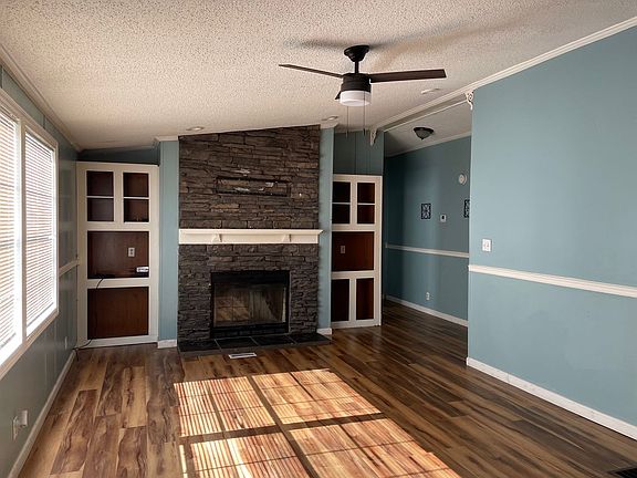 Nice 3 bedroom, 2 bath manufactured home in New Moon subdivision. The home has a nice size lot, with a great fenced-in back yard. There is a wrap-around porch where you can sit, rock and enjoy the nice shade. The inside has a great open floor plan, with a wood burning fireplace in the family room and adjoining dining room. The kitchen is huge with lots of cabinets and a sliding glass door that overlooks the wrap-around porch, great for grilling and entertaining. The laundry room has space for an upright freezer. Main bedroom is huge with a huge bathroom and newly tiled shower. Application fees are $75.00. Anyone, 21 or older, residing at the property, is required to complete an application. Security deposit is same as the rent. Pet Screening is required of all applicants to determine eligibility and Annual Pet Assurance Fee. There is a self-viewing lockbox located at the property so you can view anytime on your own.