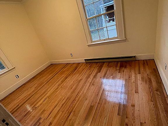 Hardwood floors, large kitchen, basement, wooded lot. Sold "as is".
