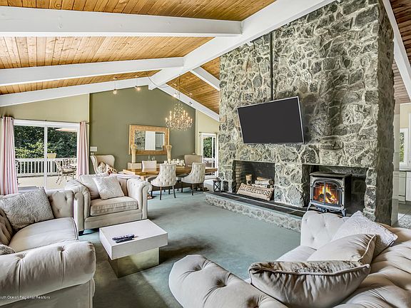 This Custom Contemporary in the lovely Country Club section of Brielle is perfect for year round entertaining. The home is situated on a large treed lot and offers bright, airy, spacious rooms in a private setting, The home has two levels and offers 4 bedrooms, 3.5 baths, and an open floorplan. The main level has a great room with stone fireplace, dining room, updated kitchen with white cabinets and granite counter top, large sunny deck, H/W baseboard heat and 2 large bedrooms. There are vaulted ceilings and windows that bring the ''outside in'' for your enjoyment. This unique home has a lower level with 2 large bedrooms, an office, galley kitchen, and 2nd family room with fireplace. There is an indoor pool with full bath, spacious yard plus a large bonus room over the 2 car garage.