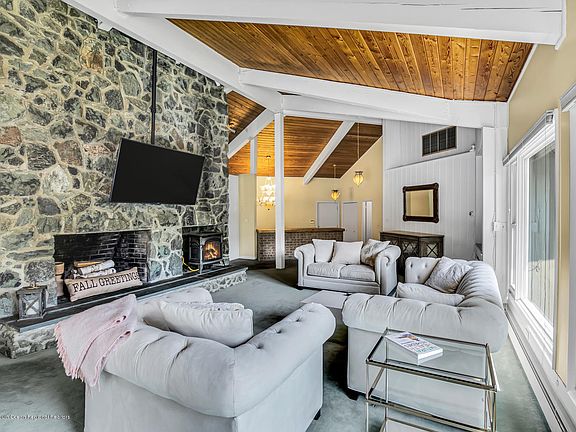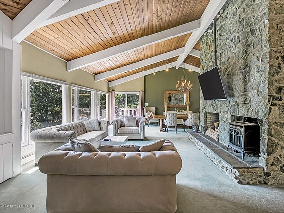 - RoomLivingRoomFeatures: Floor - W/W Carpet, Two Story, Fireplace - Other, TRY/VLT/CATH, Ceilings - Beamed, Wood Burning Stove