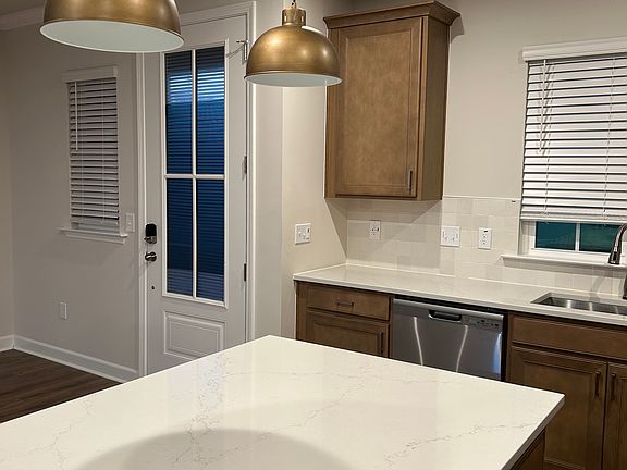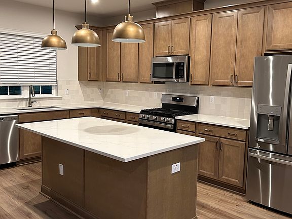 This 3-bedroom, 2.5-bathroom townhome features an open floorplan. The kitchen boasts a large island, pantry, and quartz countertops. Engineered Vinyl Plank (EVP) flooring flows throughout the first floor. An oak tread staircase leads to a versatile loft space on the second floor, perfect for additional entertaining or a home office. The second floor also includes the primary suite, complete with a tiled shower and a large walk-in closet. Additionally, there are two more bedrooms, a full bathroom, and a convenient laundry room with a washer and dryer. A drop zone is located at the garage entry. The community offers a 15-acre lake, pool, parks, and trails.