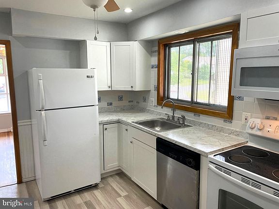 Very spacious 4 bedroom, 2.5 bath single with 1 car garage and fenced rear yard. It features a renovated kitchen, freshly painted throughout, vaulted ceilings in the living & dining rooms, family room, large laundry room, master bedroom with private bath, hardwood floors, central air conditioning and plenty of parking. The exterior has newer vinyl siding and a great fenced rear yard with 2 storage sheds. Fantastic location on a street with very little traffic and only minutes from major shopping centers and highways. Property is being sold in "As Is" condition, trees at front and rear of the house to be pruned of dead limbs.