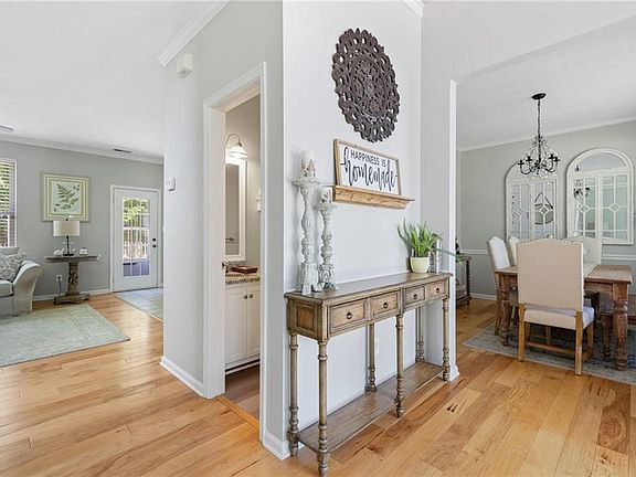 Beautifully updated transitional home situated on a cul de sac adjacent to 14 acres of city owned property with wooded backyard views. This home has been lovingly cared for. Features include newer Window World windows, blonde engineered wood floors throughout first floor, built in bookcases, crown molding, gas fireplace with marble accent, kitchen island, tiled backsplash, stainless steel appliances, double ovens, granite countertops, vaulted ceilings in master bedroom en-suite, white subway tile primary shower with marble accents, his and her walk in closets, HVAC Trane 3 zone gas system, architectural roof, irrigation system, well and a huge backyard with storage/garden shed, metal carport and three sided covered 32 foot long 16 ft tall metal RV cover on concrete slab. In Grassfield school district, convenient to shopping areas. Chandelier in foyer does not convey. Refrigerator conveys "as is"