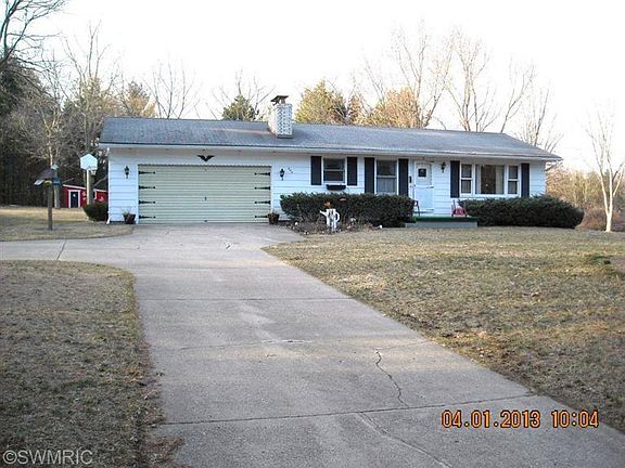 $79,900: It is time to pack your bags, load the moving van and move to Pennfield! This one owner home will not last long at this price. The seller wants to expedite a sale and let the next homeowner enjoy everything this ranch style home has to offer. Situated in the country, on a dead end street, you will be thrilled to have the use of the 1.55 acre, m/l, parcel and be in relative close proximity to Battle Creek, schools, I-94 and the FireKeeper's Casino. Highlights include: 2 bedrooms, appliances, full basement w/L-shaped rec. room (13x33 + 11X12)/fireplace (gas) and workshop, natural gas hot water heat, cablevision is available, cement driveway, large patio, 2 storage sheds and 2 1/2 car heated garage w/door opener and work bench/cupboards. Call Mike Downing (13010291). It is believed the fireplace might be able to burn wood. The laundry is currently in the second bedroom, hook-ups are in the basement.