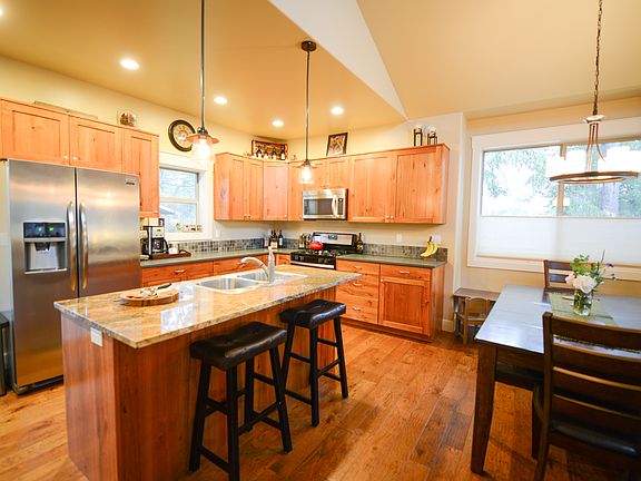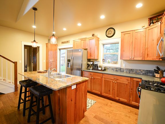 Beautiful Craftsman Home in Great Location. Built in 2014, this home is located at the end of a new paved biking and walking path that follows Sand Creek 1.5 miles into Downtown Sandpoint and City Beach. This 3 bedroom 2.5 bath home is well designed with a desirable open floor plan and vaulted ceilings. The over-sized windows throughout create natural lighting and offer treed views of the neighborhood common areas and surrounding mountains. The main floor master bedroom has a spacious walk in closet, large tiled corner shower and access to the outdoor living space. High end components include radiant heat flooring throughout the main level, stainless appliances, granite island, quartz counter tops, custom cherry cabinetry with soft-closing drawers, slate tile fireplace and premium flooring throughout. The fenced private backyard has a 325 sq. ft. paver patio, slate fire pit, landscaping, full sprinkler system and mature trees. Need to see this home for yourself to appreciate.